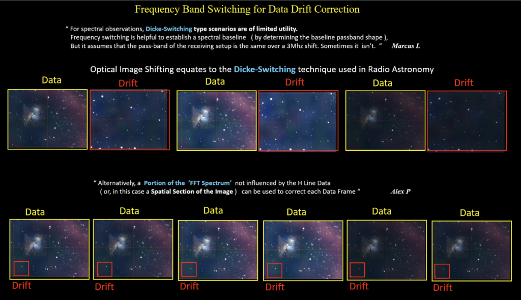 The Top 3 Data/Drift Pair shows using an image shift to measure system or sky changes. ( aka the 1423 MHz freq shift ‘Dicke-Switch’ technique )