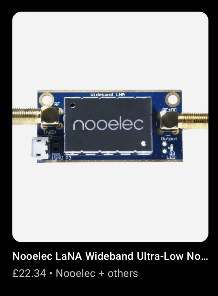 | 🥇 | Nooelec LANA | Very low noise, ideal first stage |
