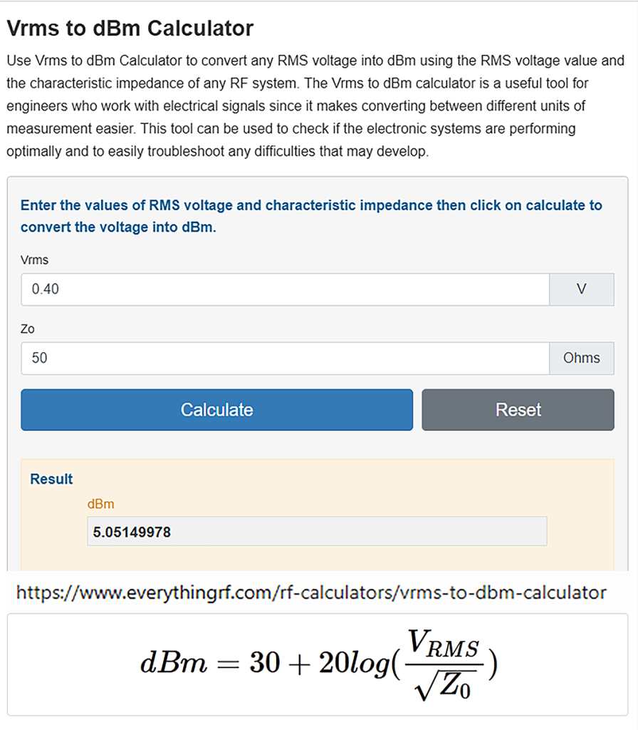 Converting Relative RMS Power on plots above to dBm:
