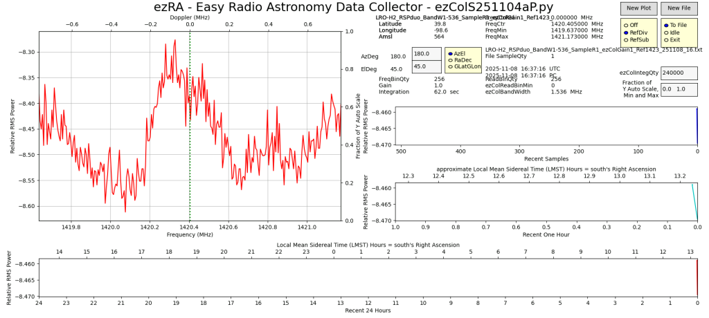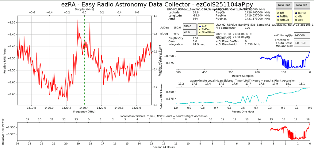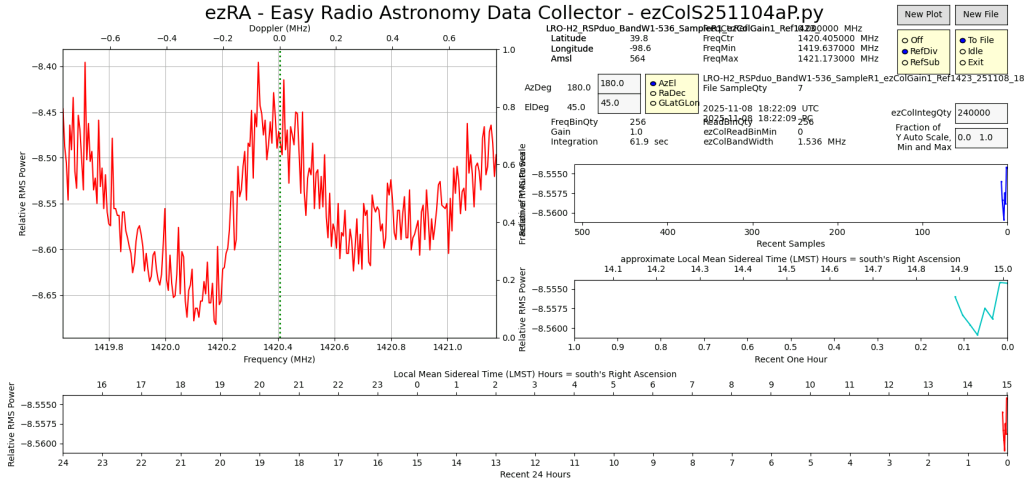 Latest ezCol beta testing with SDRplay RSPduo device on LRO-H2 radio telescope.