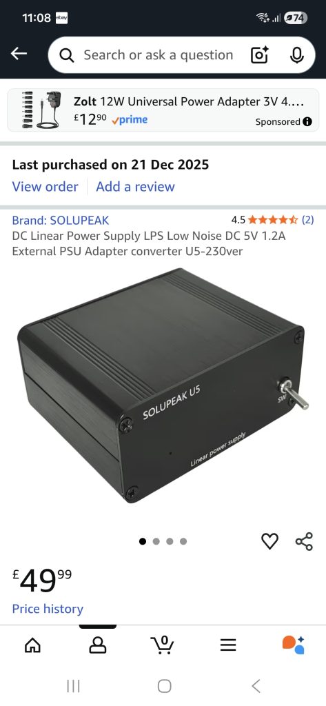 Linear power supply purchased Amazon for SAWBird H1 LNA 29/12/2025