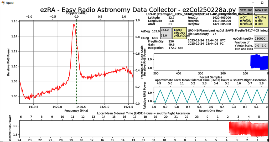 Uncategorized LRO-H1(Ptarmigan Array Radio Telescope) Data Collection Screenshot using ezCol from ezRA on 24/12/25 @ 23:45 (Christmas Eve 2025). December 24, 2025 Admin