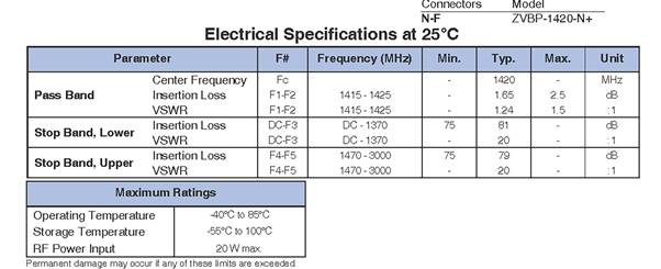 Product Review: Mini Circuits ZVBP-1420-N+ Cavity Band Pass Filter, 1415 – 1425 MHz.